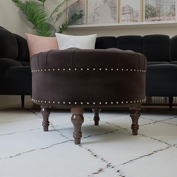 Be the first to review “Ereteken ART Round Velvet Footrest Stool, Upholstered Ottoman Coffee Table, Button Tufted Padded Foot Stools with Solid Wood Legs (Brown)”