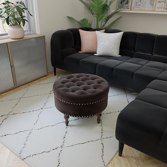 • SIZE: Round ottoman footrest stool meaures :60″ W x 60″ D x 37 ” H, it’s ideal for a coffee table, a footrest, or a vanity chair. Recommended pair two together for added impact